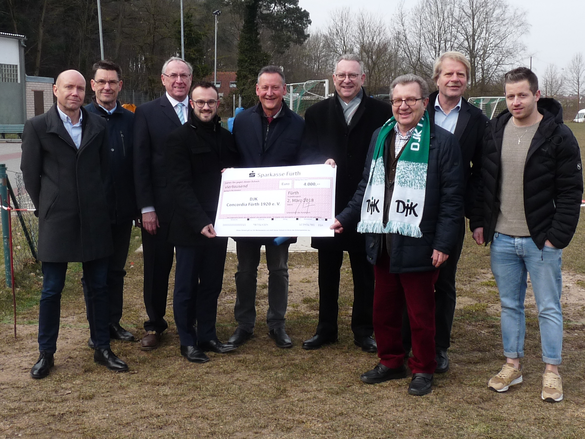 Am 2. März übergab der Vorstandsvorsitzende der Sparkasse Fürth, Hans Wölfel, zusammen mit Oberbürgermeister Dr. Thomas Jung eine Spende in Höhe von 4.000 Euro an Bernd Jesussek, den ersten Vorsitzenden des Sportvereins DJK Concordia Fürth.
