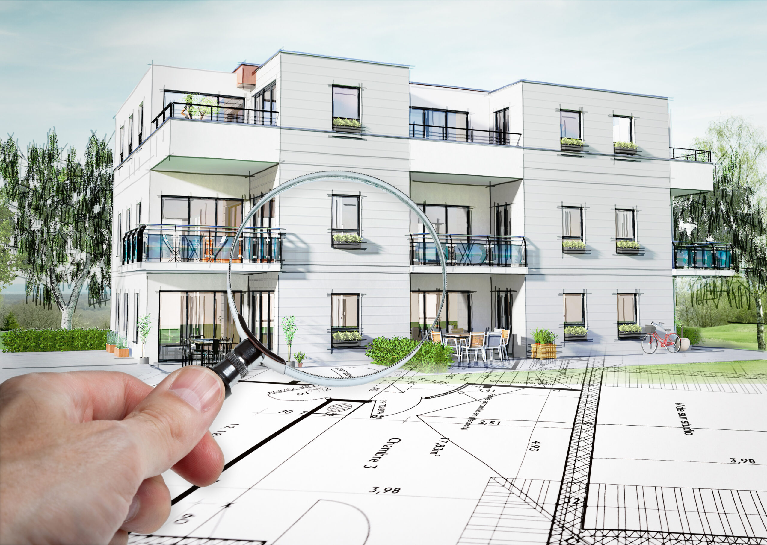 Concept 3D d’un petit immeuble résidence moderne avec balcon et jardin