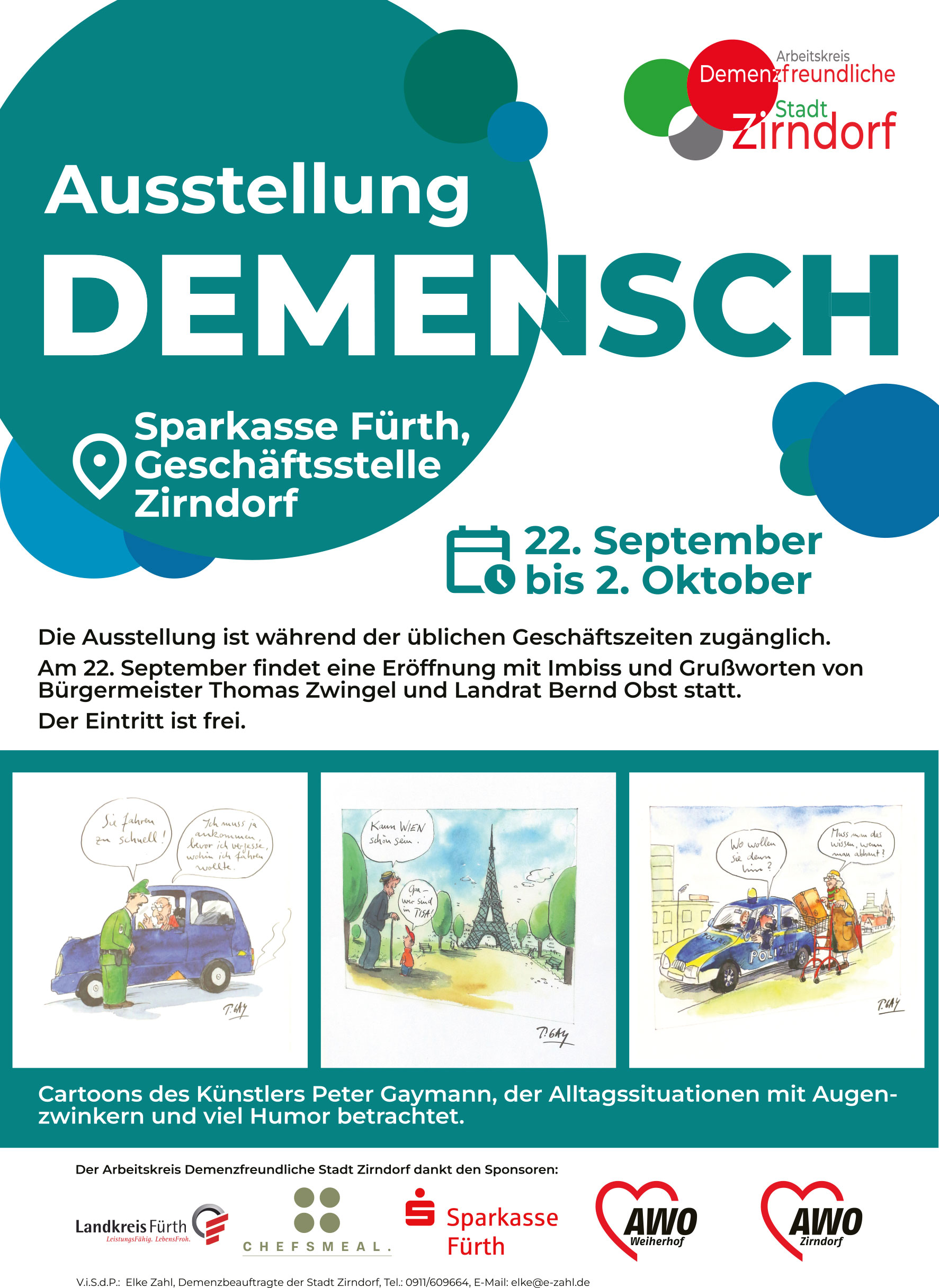 Im Mittelpunkt steht die humorvolle und zugleich berührende Ausstellung „DEMENSCH“ mit Cartoons des bekannten Künstlers Peter Gaymann.