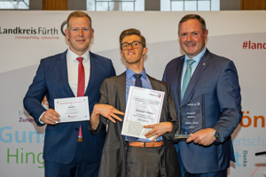Stiller Held: (v.l.n.r.) Kai Tusak, Vorstandsmitglied Sparkasse Fürth, Dominik Büttner, Stiller Held und Landrat Bernd Obst | Foto: Landkreis Fürth