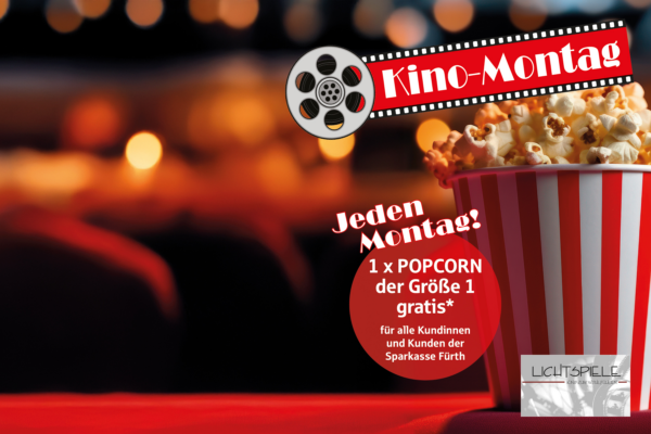 Filmfreunde aufgepasst! Im Cineplex Fürth erwartet euch am Kinotag nicht nur ein abwechslungsreiches Kinoprogramm, sondern ein Highlight, das euren Kinobesuch noch lohnenswerter machen. Am Dienstag erhalten Kunden der Sparkasse Fürth eine Tüte Popcorn (1,6 l) gratis. ► Mehr lesen